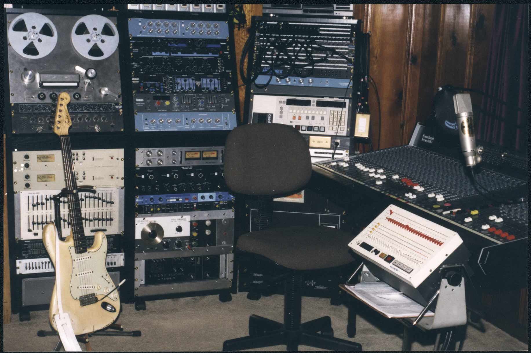 For you hi-finatics, the equipment in his studio consisted of the following: For tape recorders - Vortexion, C.B.L, Bang & Olufsen, Brenell, and later, an old mono monster EMI BTR-1 (which came from Abbey Road studios). Bouncing signals between machines gave Pete multitrack capabilities. Up to nine bounces were achieved on some songs before severe signal degradation prevented further. Tape speeds of 15, 7 1/2, 3 3/4 , and even 1 7/8 inches per second were used to produce various delays of slap-back echo. Other echo devices included a Binson Echorec, Watkins Copycat, and a couple of Farfisa spring reverb units to achieve stereo reverb. Extra reverberation was acquired by commandeering the bathroom as an acoustic echo chamber, and also the underground concrete-walled bomb shelter from World War 2, which was located in Pete's garden. A visiting producer once remarked that it may have been illegal to have so many echo devices in one place!A custom made six input mixer linked to an RCA orthophonic equaliser provided frugal mixing power. The monitor system consisted of a Norwich-made HACO amplifier linked to a pair of Golden Wharfdale speakers. Two local electronic wizards - Granville Hornsby and Tony Howes built Pete a couple of unique effects boxes (the Goobly Box and the Humbert Humbert) with which some unprecedented sounds could be created. The sound of a monophonic synthesizer was simulated by hand-twisting the oscilator dial on a Honor sine wave generator. Pete discovered that the recognizable Joe Meek sound (squashing signals through a Fairchild 670 compressor), could almost be duplicated by carefully overloading the valve pre-amps of certain tape recorders, hence saturating the tape.Studio instruments included Fender, Marshall, and Haco amplifiers; an upright piano with tacks in the hammers, a Fiesta red '62 Fender Precision bass, electric violin, electric sitar, wooden flutes, various percussion instruments, Levin acoustic guitar with DeArmonde pickup, and of course let's not forget Henry- Pete's trusty Gretsch guitar -which he still plays to this day.
